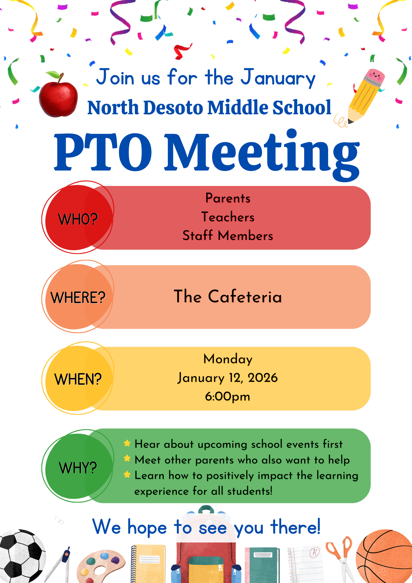 * NDMS PTO meeting, Monday, January 12, 6 PM, NDMS Cafeteria