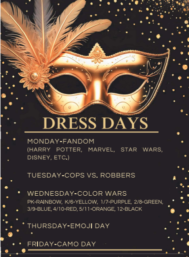 Here’s a reminder of the dress-up days for the week of December 8th–12th.